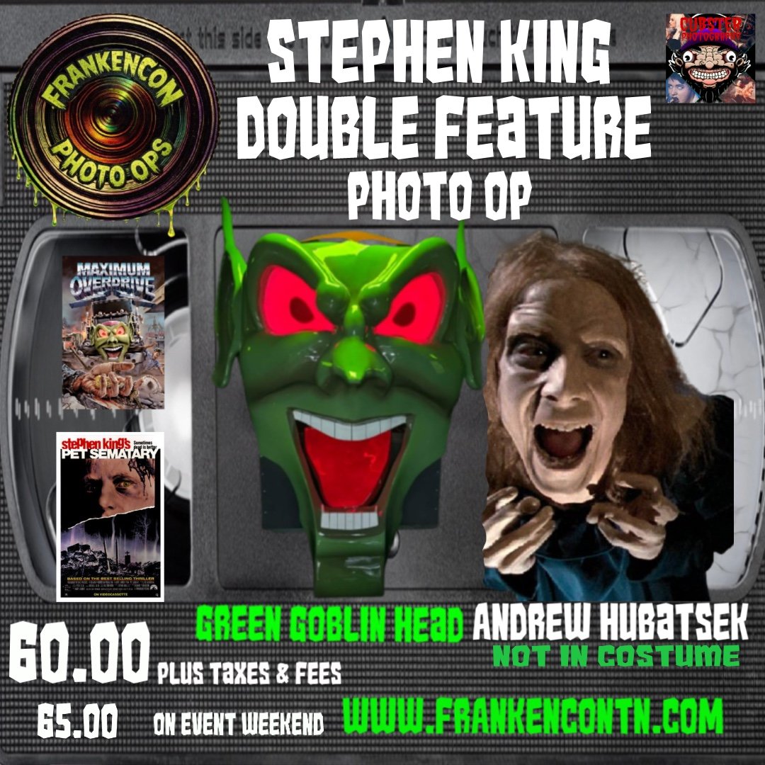 For the first time ever, FrankenCon features a Stephen King Double Feature Photo Op with the Green Goblin Head from Maximum Overdrive and Andrew Hubatsek who played Zelda in Pet Sematary! You dont want to miss this once in a lifetime oppurtunity!